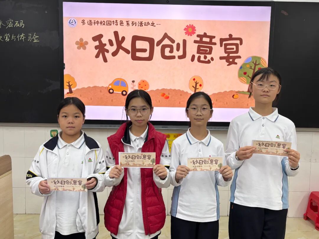 四间多语种教室化身创意工坊,同学们手持礼品兑换券,领取专属手工材料包,在专注与欢笑中完成属于自己的秋日作品。