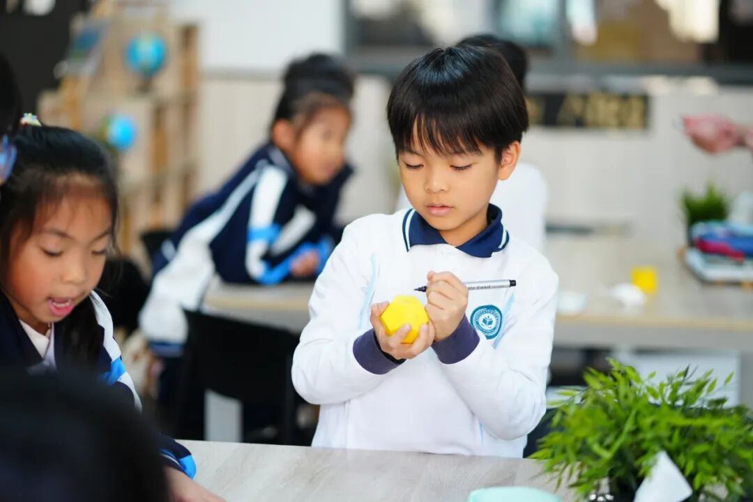 一年级的学生们通过整合对零维、一维和二维图形的理解,成功构建出表达特定情感的三维模型,展现了他们对几何知识的实际运用能力。与此同时,孩子们遵循"拟定标题-构建图景-创意写作"的结构化写作流程,独立完成了富有想象力的故事创作,呈现出在语言表达能力上的显著进步。