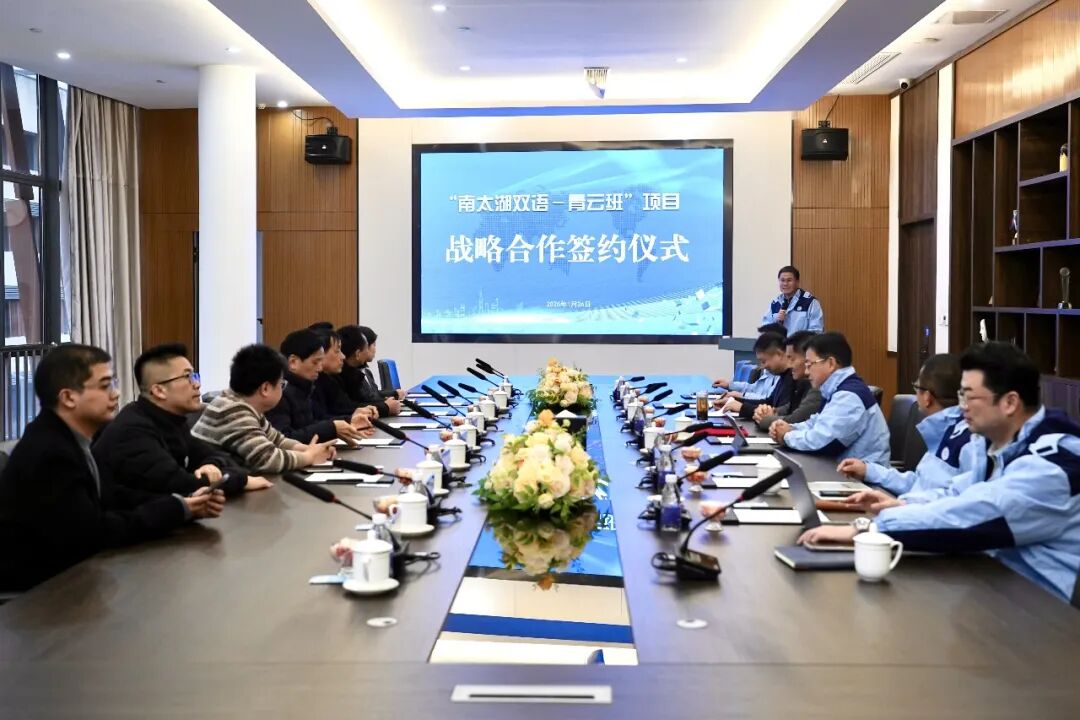 双方领导团队共同回顾了自去年12月初达成的合作共识,以“太湖之约,青云之上”为主题,正式开启教育合作新篇章。